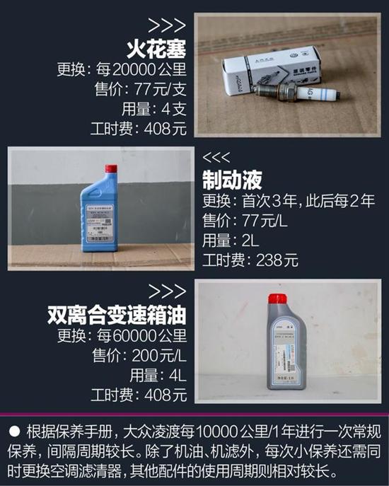 编辑小结:根据保养手册,大众凌渡每10000公里/1年进行一次常规保养,间隔周期还是相当长的,经销商则建议可在7500公里时保养,但并非强制,车主可根据自身用车情况和环境进行选择。凌渡常规保养更换机油、机滤和空调滤清器大约需要719元,单次价格看似不菲,但均摊到里程上就显得合情合理的。而事实上,5829元的总保养费用在紧凑级家轿中甚至算便宜的,这点让人有些意外。