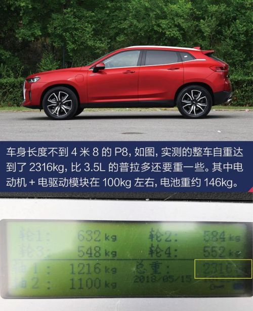自重2.3吨的P8没电油耗也不错