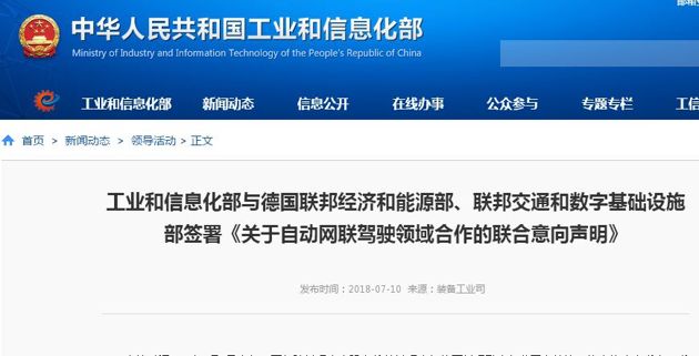 根据工信部官网消息,德国当地时间7月9日中午,工业和信息化部部长苗圩与德国联邦经济和能源部、联邦交通和数字基础设施部代表共同签署了《关于自动网联驾驶领域合作的联合意向声明》(以下简称《联合意向声明》)。