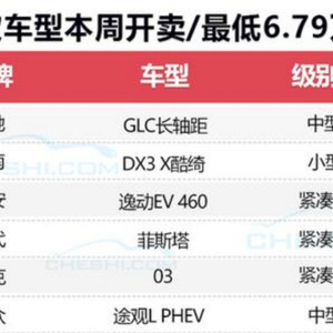 作为购车黄金季,不少车企都将新车发布会放在“金九银十”期间。网上车市梳理了本周(10月15日-10月21日)的上市新车,共计奔驰GLC长轴距、领克03、上汽大众途观L PHEV、北京现代菲斯塔、长安逸动EV 460、东南DX3 X酷绮六款新车,SUV车型多达三款,价格方面,6款新车中最便宜的东南DX3酷绮仅售6.79万元。