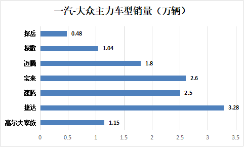 与上汽大众和上汽通用相比,凭借13.2万辆的销量成绩位列第三的一汽-大众,1月销量同比微增0.6%。其中,一汽-大众1月销量过万辆的车型共6款,分别为高尔夫家族、捷达、速腾、迈腾、宝来和探歌。