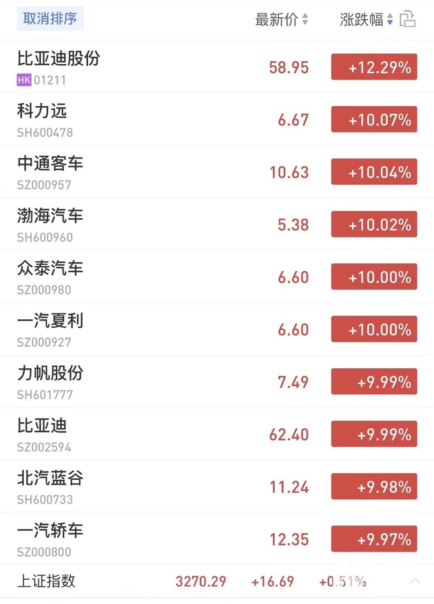 或受上述《征求意见稿》消息影响,4月17日,比亚迪、北汽蓝谷、众泰汽车、一汽轿车、力帆股份等多个汽车股股价上涨。其中,截至收盘,比亚迪(002594,SZ)上涨5.67%,报62.4元/股;北汽蓝谷(600733,SH)上涨1.02%,报11.24元/股。