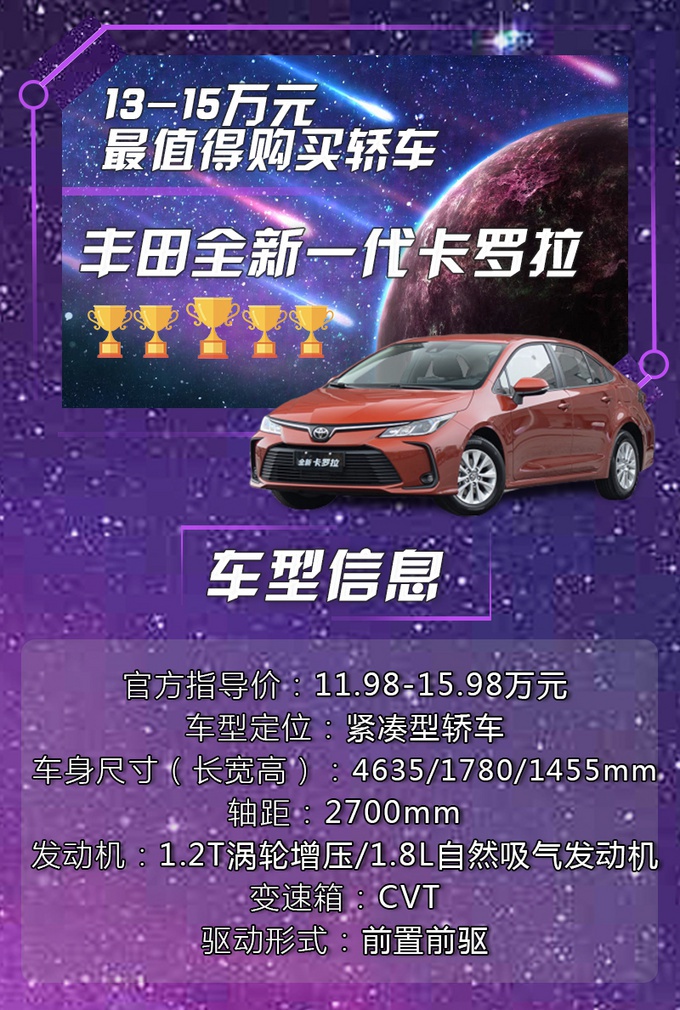 丰田全新一代卡罗拉出自于丰田全新TNGA架构,依托于此,出生于架构下的全新一代卡罗拉,无论是在动力、燃油效率,还是在设计、操控以及安全性等方面,相比上一代车型都有着革命性的提升。特别是全系标配的诸多实用功能,让其做到了“入门既高配”,同级鲜有。