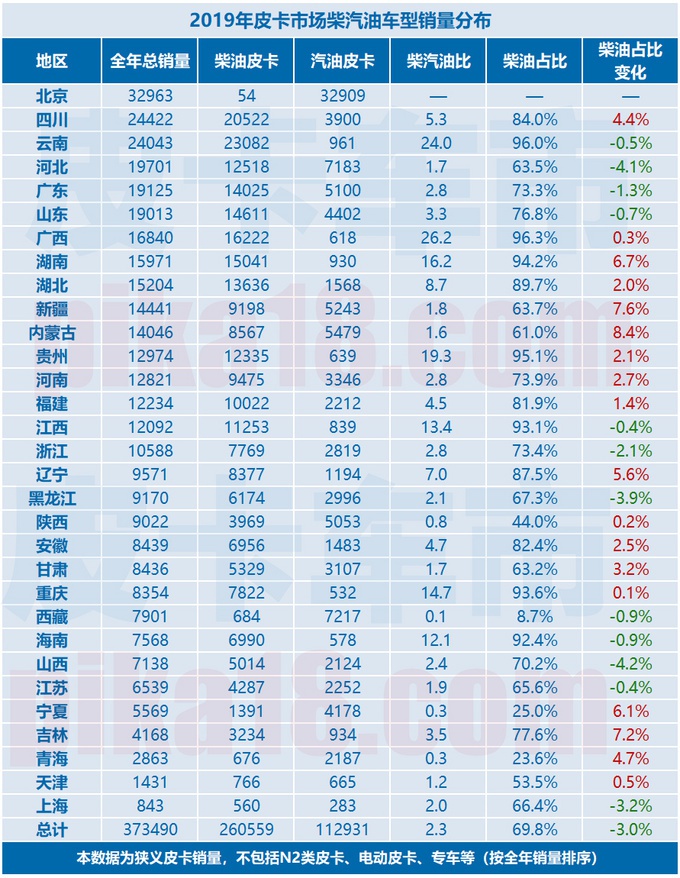 早在5年前,浙江省皮卡销量也曾稳居31省区榜单前四位,也曾经是名副其实的皮卡大省。在那个时候,皮卡扮演的更多的是工具车角色,它助力众多用户实现了理想,并且走上了致富之路。后来,很多人群都将座下皮卡更换了轿车、SUV以更好地在城区中生活。浙江省越来越发达,人们的生活越来越富足,然而皮卡的销量逐年下滑。直至2019年,浙江省的皮卡销量已经跌至第16位。