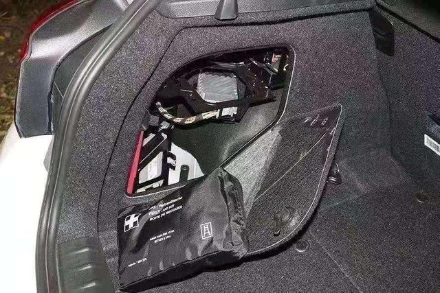 奔驰的很多车型都配置了车载急救包。打开奔驰C级 (配置|询价)的后备箱,在后备箱左侧的网格里可以看到一个黑色的包装袋,那就是奔驰C级 (配置|询价)的车载急救包。