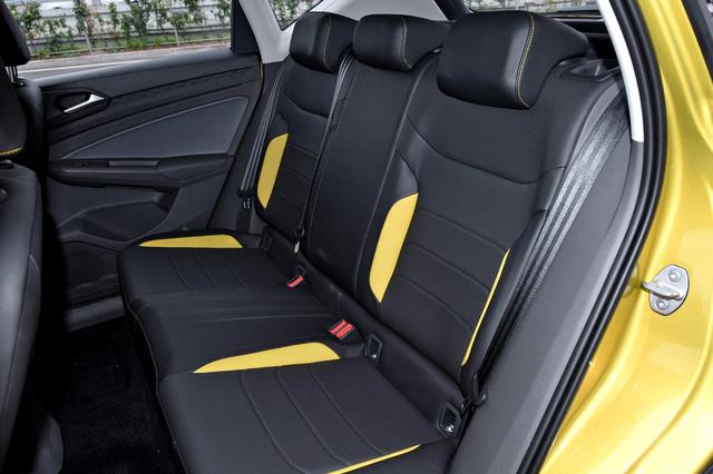 后排座椅同样采用黑黄撞色设计,两侧座椅支撑与包裹表现同样表现出色,坐垫长度能够对大腿起到很好的承托作用,而咖哥实际体验后,后排座椅的填充物要比前排座椅更柔软一些,乘坐时会有一种陷进去的感觉,乘坐舒适度还是很有保证。