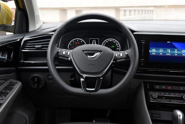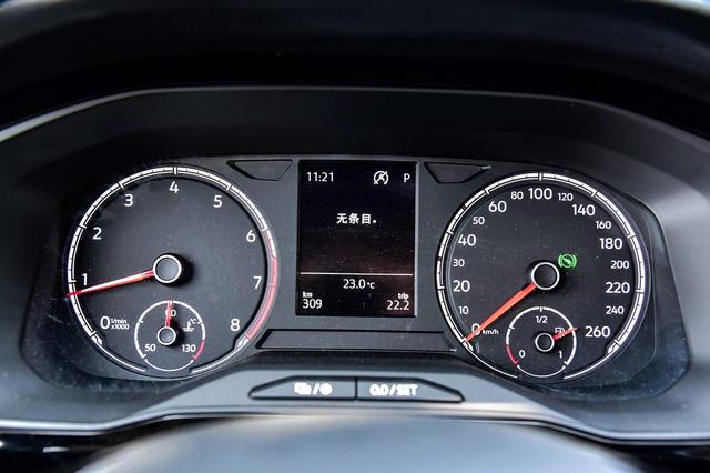 方向盘造型到按键布局也是大家熟悉的风格,并采用了皮质包裹,手感还是不错的,而仪表盘采用了传统的双圆形机械仪表,搭配中央单色行车电脑显示屏,虽然比起全液晶仪表盘有些落伍,但好在显示内容更直观。