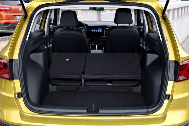 而后备厢的空间也并不算小,且开口的位置也较低,后排座椅支持4/6比例放倒,遗憾的是放倒之后地台并不是纯平,而是有一个比较高的台阶,在实用性上还是稍有一些折扣。