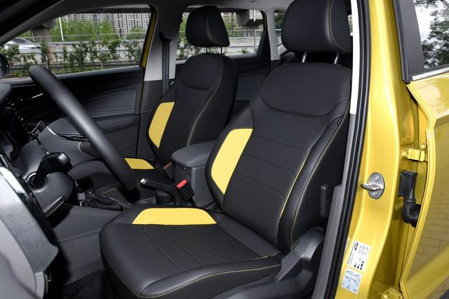 皮质座椅采用了黑黄撞色设计,配合黄色缝线,使得车内增加了不少时尚和运动感,另外主驾驶座椅支持6向电动调节和腰部支撑手动调节,顶配车型主副驾驶座椅还支持加热功能。