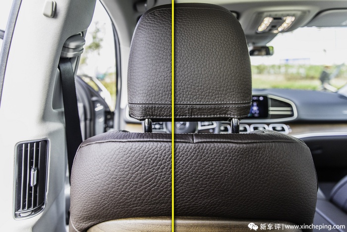 回答刚刚那个问题,答案是:不是。也许是我不懂欣赏,也许是我身材没达到西方人那种魁梧的程度,但GLS上这套座椅真不是我的菜,在这座椅上我感觉不到所谓的尊贵感。座椅表面的蒙皮比起S级上的要硬了好几个度,坐上去感觉整个身体都被顶出来,我的身体并没有多贴合,并且采用的还是荔枝纹皮料,摸上去也是粗糙的手感,完全没有S级上面那种细腻的感觉。