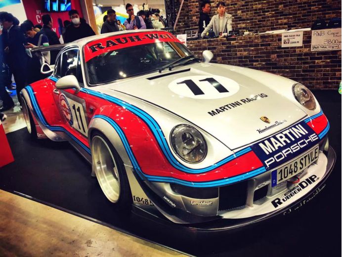 逛完LB展台,怎能不去RWB看看呢?遗憾的是,今年RWB的阵容并不算强大,仅仅带了两台车来参展。你眼前这台MARTINI涂装的保时捷993,可以说是帅的一塌糊涂。GT银色的车身被MARTINI经典的蓝红色涂装所包裹,超宽的尾部造型,配合夸张的空气动力学组件,都让这台993变的更为经典。