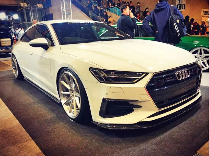 看看这台奥迪A7 (配置|询价)怎么样?朱鹭白车漆、矩阵大灯、六边形中网,让它的外观不能再低调了。没有过多浮夸的包围,仅仅靠一些碳纤维组件进行点缀。令我感到诧异的是它的20英寸大轮毂,安放在A7身上好像并不觉得大。
