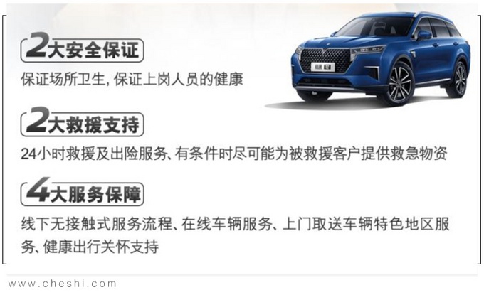 东风启辰的两大安全保证为保证经销商场所卫生、保证上岗人员健康;两大救援支持主要为:24小时救援以及出险服务。此外,东风启辰还将在条件允许的情况下尽可能为被救援客户提供救急物资。服务保障方面,东风启辰推出线下无接触式服务流程、在线车辆服务、上门取送车地区服务以及健康出行关怀支持。