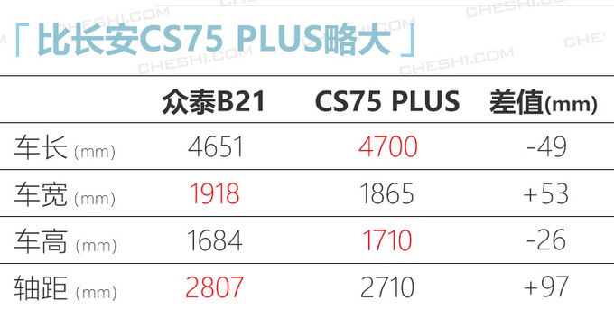 目前,众泰汽车旗下共有5款SUV车型在售,分别是T300小强版、T300、T500、全新T600和T700。网上车市从众泰汽车官方获悉:公司将于2020年推出至少2款全新产品,其中中型SUV众泰B21的整体尺寸比当前热销的A+级SUV长安CS75 PLUS (配置|询价)更大。