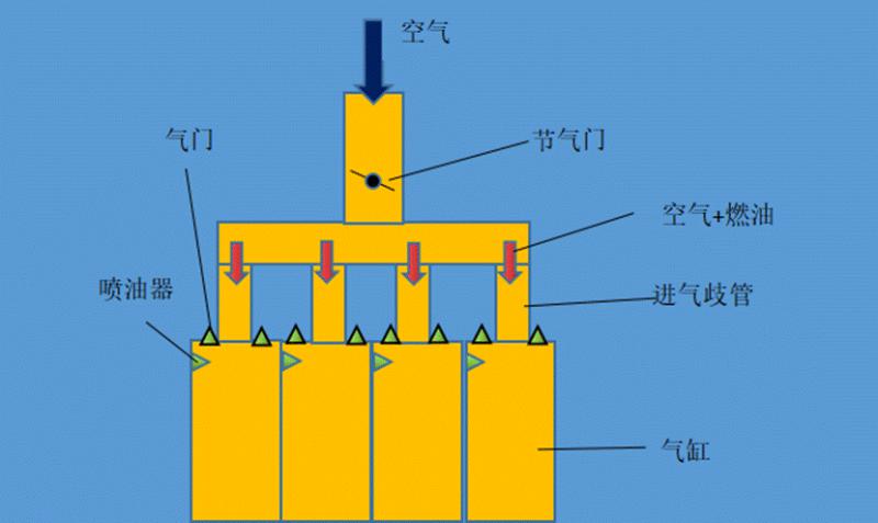 单点喷射就是只有一个喷油嘴喷射燃油,喷油器在节气门之前喷射燃油,然后与空气混合,再通过进气歧管分配到各个气缸。举个通俗的例子,我们炒菜需要菜和调料,菜好比空气,调料好比燃油,单点喷射就像厨师把所有的菜和调料提前混合好,再分配到不同的锅里。