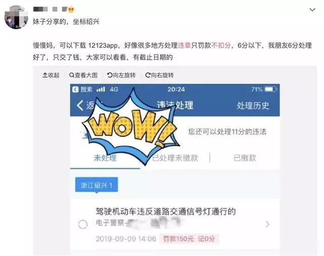 尽管只交罚款不扣分处理违章的消息并没有正式进行通报,也并无书面文件。但不少网友在网上纷纷晒出自己的“战绩”,并表示这几天在交管12123”APP上处理违章并不扣除驾驶证分数。甚至还有一些平时开车不太注意的车友,也趁着这时候,把以往存着的违章也一口气清理了。
