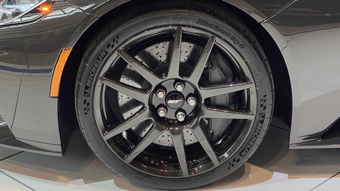 2020款福特GT既然推出了碳纤维特别版,碳纤维轮毂也自然成为了标配。当然了,对于你来说过多的碳纤维如果会让你觉得审美疲劳,福特还给出了个性化的外观选装包,经典的车身条纹涂装,可以让你找到属于GT的赛车基因。