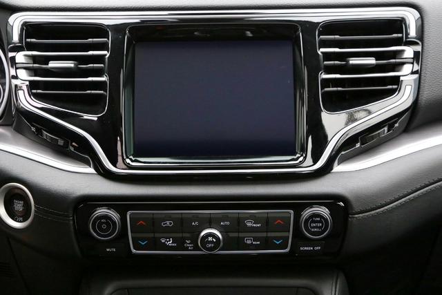 中控区域除了最低配以外车型都采用了一块8.4英寸中控液晶大屏,内部集成了Jeep Uconnect多媒体系统,并支持CarPlay和Carlife手机互联,屏幕的显示细腻程度和系统操作流畅度均表现不错。在顶配车型当中,还配有带降噪功能的哈曼卡顿音响系统。