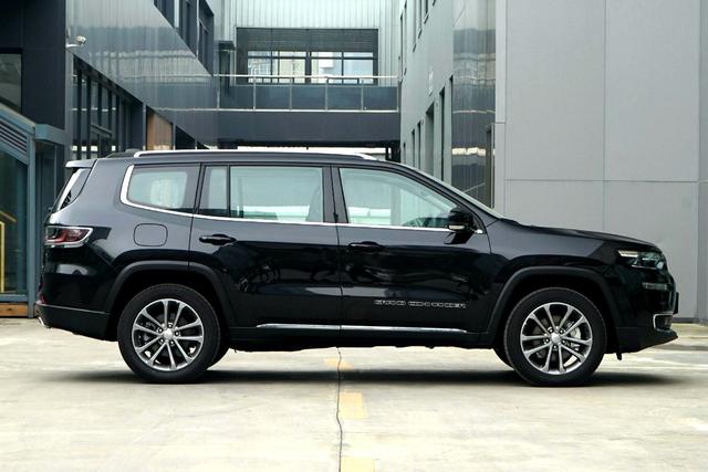从侧面我们也可以看到,它拥有Jeep家族式的简洁设计,为了营造更佳的空间效果,车身线条的后半段是平直风格。车身尺寸长宽高分别为4873/1892/1738mm,轴距为2800mm。多条辐轮圈粗细相间,看起来质感还是很出色。