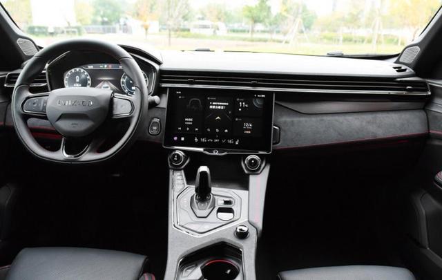 进入车内,呈现在眼前的虽说是另一种风格,但同样能让你的嘴里连蹦出几个感叹词,如果说外观的主题是科幻,内饰的关键词显然是时尚。内饰的配色和设计都很有想法,大量缝线效果和色块拼接以及金属点缀的运用手法,仿佛是出自服装设计师之手,也确实起到了提升质感的作用,这种思路让人容易使人联想到法国车的设计,但显然吉利更知道中国人想要什么。