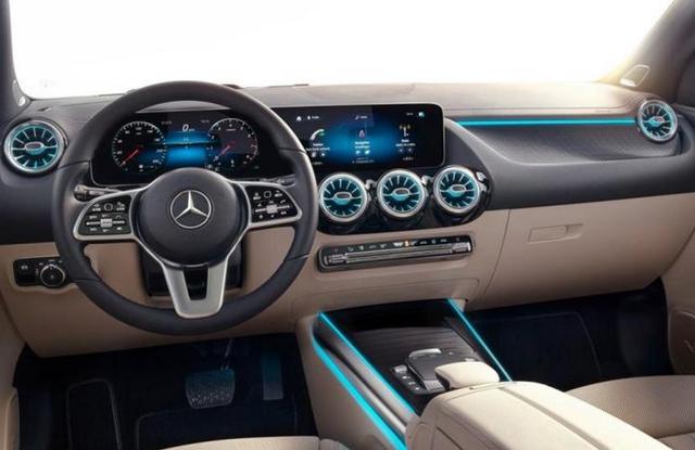 入车内,全新GLA的内饰可以说是意料之中,双10.25英寸仪表+中控连体液晶大屏在高配车型上带来了更强的科技感,而造型独特的圆形空调出风口、带有双拇指控制功能的最新样式多功能方向盘,带语音控制的MBUX车机系统等也如期出现在了全新GLA身上。得益于更长的轴距,奔驰官方称全新GLA的乘坐空间、特别是后排腿部空间,相比现款车型有所提升。