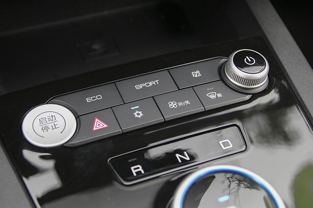 采用旋钮式换挡机构,P挡设置在中间位置,不过旋钮的限位有些模糊,在切换空挡的时候经常会出现误操作。在换挡区域前部还有一个小储物格,同时也是无钥匙启动功能的感应区。