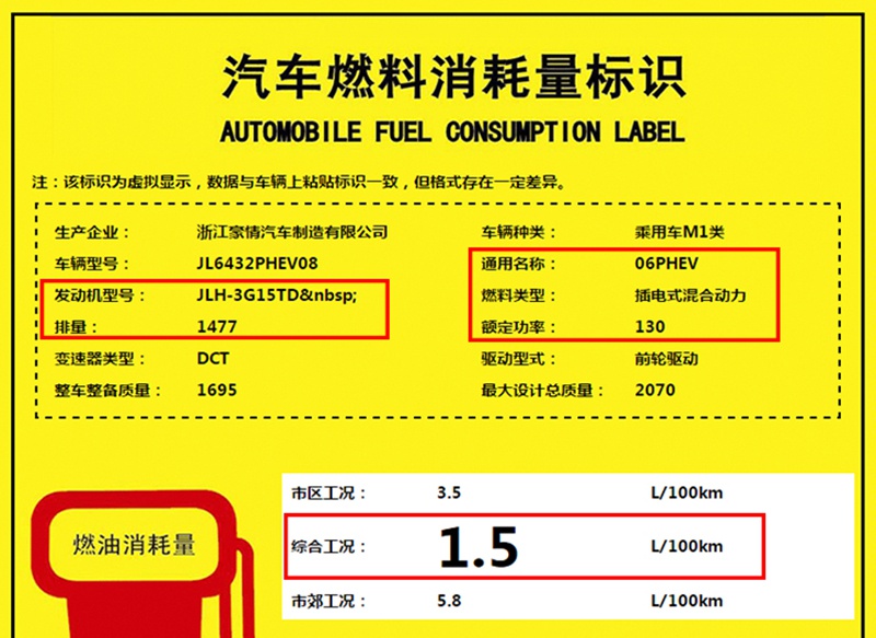 日前,我们从中国汽车燃料消耗量查询系统获取到一组关于领克06 (配置|询价) PHEV的燃料消耗量。其搭载1.5T发动机+电动机组成的插混系统,综合工况下百公里油耗为1.5L。