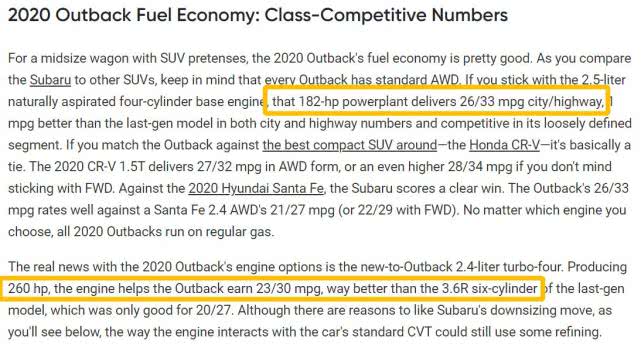 Motor Trend对新一代Outback的油耗表现介绍