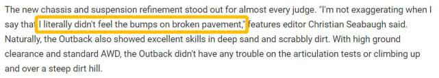 Motor Trend对新一代傲虎路面颠簸的过滤给了很高评价