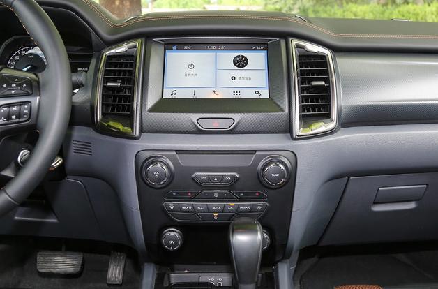 内饰上Ranger的整体设计与江铃福特的撼路者基本保持一致,整体感觉就是简单,当今德系和自主SUV上那些花哨设计它基本找不到。不过大面积的软材质和比较精细的做工,用起来也没多少粗糙感受,基本能达到30万价位水准。虽然不好看,但整体还算好用,比如手感不错的方向盘、回馈力度不错的按键、合理的功能分区等等。8英寸触摸屏的中控在今年甚至有种过时感,但反应速度和清晰度还不错。总的来说,Ranger驾驶舱走的是"实而不华"的路线。