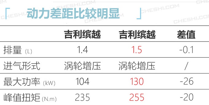 虽然吉利新款缤越搭载的是与帝豪GL以及帝豪GS等车型相同的1.4T发动机,但匹配的变速箱大概率上将是与缤越1.5T相同的7速双离合变速箱,这也要比主打舒适、平顺的CVT变速箱,在换挡过程中响应更积极一些,动力表现会有所提升。