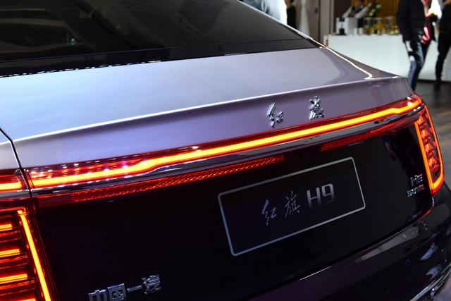 红旗H9车尾造型和前脸一样显得十分庄重,棱角分明的尾灯组搭配贯穿式中央灯带,此外,红旗H9的尾部LOGO采用了汉字设计,也别具一格。