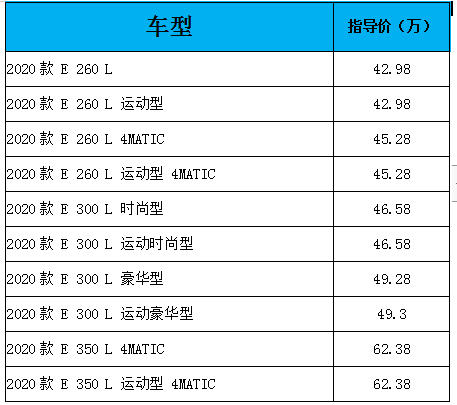 动力:E300和E300L车型使用2.0T纯燃料发动机,最大马力为258马力,峰值扭矩为370马力,它与9速手自一体变速器相匹配,可在6.6秒内加速至百公里。