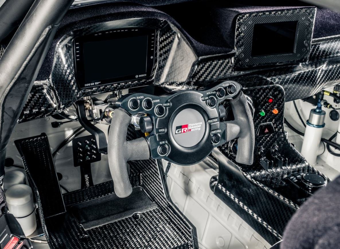 民用车型与赛用车型的变化是显而易见的,车辆采用了大量的天然纤维复合材料制成,这包含了前保险杠和扰流板以及固定式尾翼等部件,使得这台GR Supra GT4的整体车重仅1350公斤。