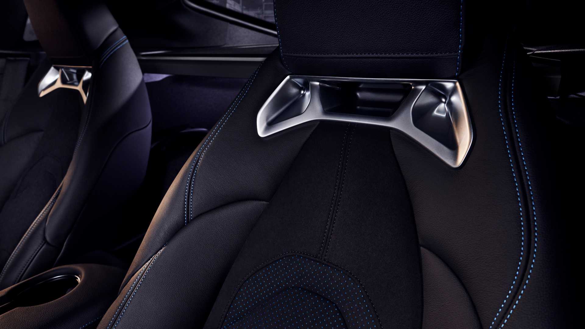 至于内饰部分,当然也有所不同,比如:黑色Alcantara+皮质拼接材料的座椅、蓝色的缝线、专属的皮质缝线钥匙套和后备厢垫,这些都是普通车型所不具备的。