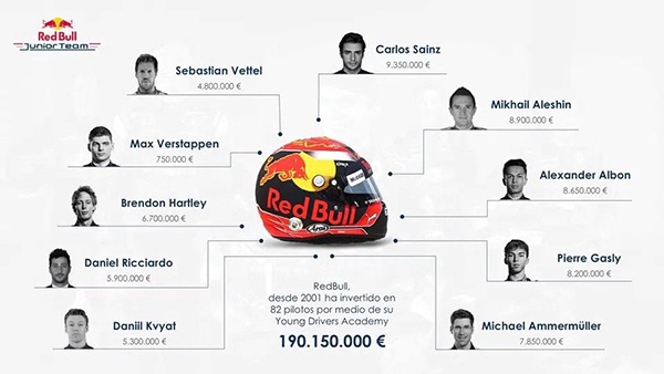 ▲红牛为培养各位车手投入的资金