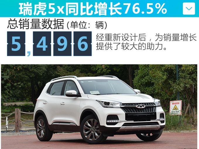 具体车型部分,奇瑞汽车的瑞虎系列月销量达到20,798辆,实现10.8%的同比增长。这其中,全新一代瑞虎8 (配置|询价)继续扮演着家族销量担当的角色,1月销量达到11,005辆,同比增长9%,取得了连续6个月销量过万的突出表现。瑞虎8自换代以来,颜值、动力均有着明显的改观,充分满足了当下消费者对于一款中型SUV的需求,取得好成绩毋容置疑。另外,瑞虎5x的表现同样可圈可点,1月累计销量为5,496辆,同比增长76.5%。