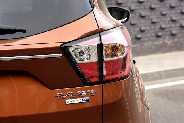 车尾部分,翼虎延续了老款车型的经典造型,有着较强的层次感。而最大变化在于后保险杠位置取消大面积镀铬装饰,刹车灯采用了LED光源,而转向灯、倒车灯依旧为传统的卤素光源。