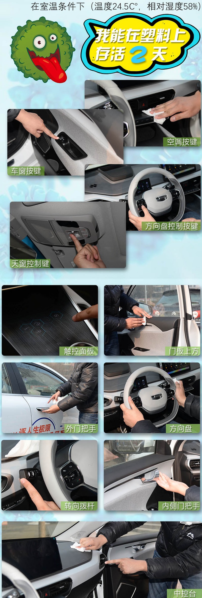 而SARS病毒经过科学实验,在不同中材质物体的表面能够存活的时间不尽相同,多则两天少则数个小时,下面我们就拿贾老师的几何A (配置|询价)为例,来看看病毒在车内不同种材料下,能够存活多长时间。