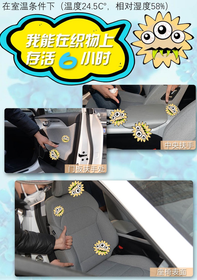 随着时间的推移,我们的疫情反击战已经开展到了第二阶段,虽然每日患者增长数在逐渐降低,治愈人数也是逐步升高,但是我们并不能放松警惕。相信已经有不少小伙伴已经复工或者正在返回工作地的途中,相对于乘坐公共交通通勤,有不少朋友都选选择私家车通勤以降低被病毒感染的风险。但是当您在出入公共场所后进入私家车内,避免不了触碰到车内的各个区域,那么病毒能够在车内存活多长时间呢?我们的爱车究竟需不需要消毒呢?