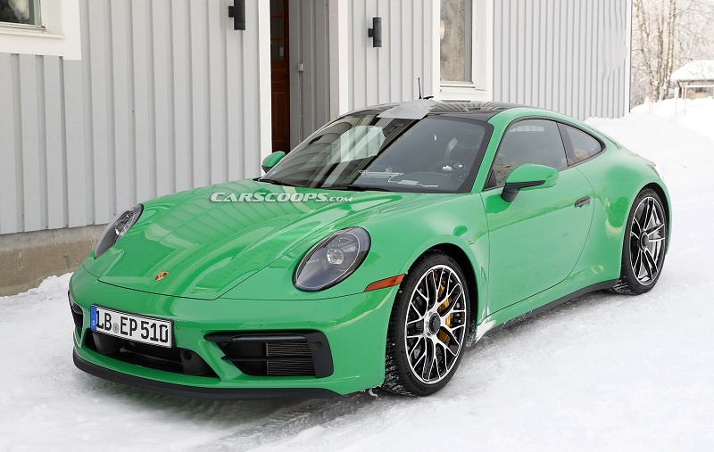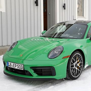 近日,外媒曝光了一组全新保时捷911 GTS车型的测试谍照。据悉,全新保时捷911 GTS车型有望在今年正式发布。外观方面,新车在前脸部分依旧采用了全新一代911的家族风格,前格栅依旧呈三段式造型,中间为梯形结果,而左右两侧则有着黑色的边角装饰以及细长的转向灯,下方还有着犀利的黑色前唇,彰显其运动身份。