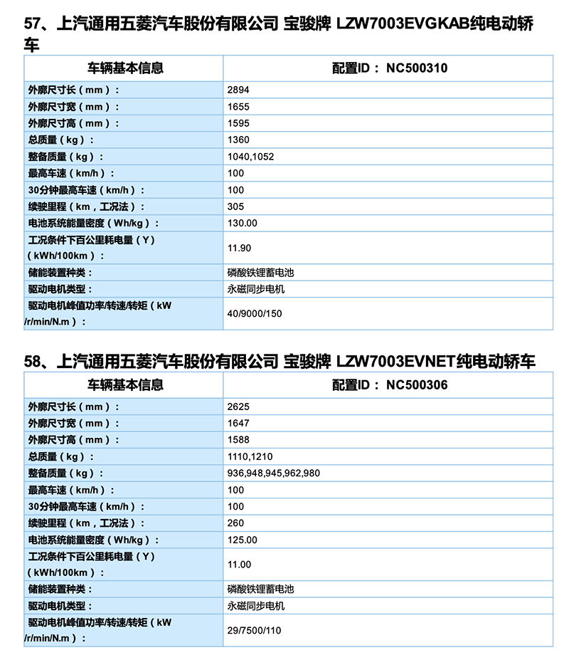 动力方面,纯电续航里程分别为260km和305km,电池均采用磷酸铁锂电池,电池密度分别为125Wh/kg和130Wh/kg。其中,续航260km版本车型搭载一台最大功率29千瓦的永磁同步电机,最大扭矩110牛·米,比宝骏E100和E200要多出10km。续航305km的四座版本车型搭载一台最大功率40kW的永磁同步电机,动力则更强,峰值扭矩150牛·米。