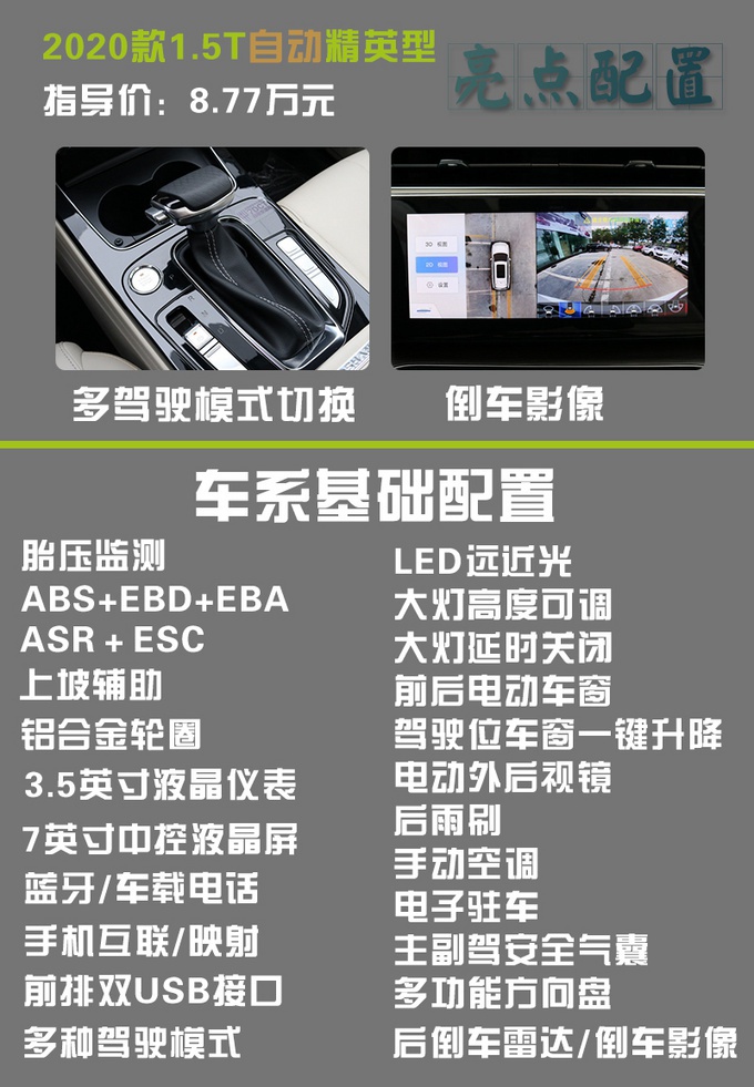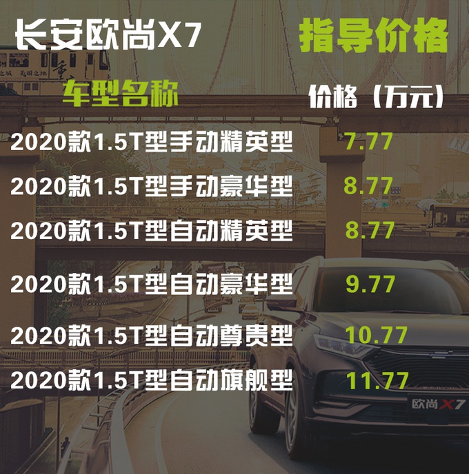 指导价为8.77万元自动精英型为欧尚X7自动挡车型的入门款,和手动精英型相比,一万元的差价升级了自动变速箱、倒车影像和多种驾驶模式。和手动豪华型相比,价格则是持平,这款车型依旧是适合想买台自动挡的欧尚X7,但预算不多的消费者。同样,您的购车预算是准备在10万元能落地,这台8.77万元的欧尚X7自动精英型推荐给您。