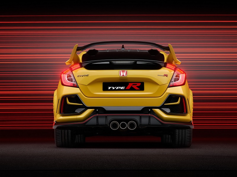 近日,外媒曝光了一组2021款本田思域 (配置|询价)Type R限量版车型官图,新车将更注重轻量化以及倾向于赛道驾驶,并且限量发售700辆,600辆发售美国市场,100辆供于欧洲市场,该车将在今年下半年发布。外观方面,新车与普通版本Type R没有太大区别,只是该车采用独特的黄色车漆,并在车身多处增加了限量版标识,以表明身份独特。
