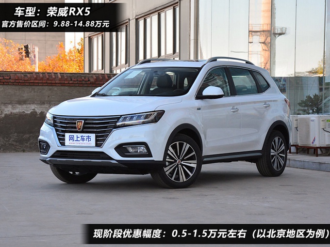 现阶段以北京地区为例,荣威RX5存在有0.5-1.5万元左右的优惠幅度,那么在结合完优惠幅度进行计算后,其终端售价区间为9.38-13.38万元左右。