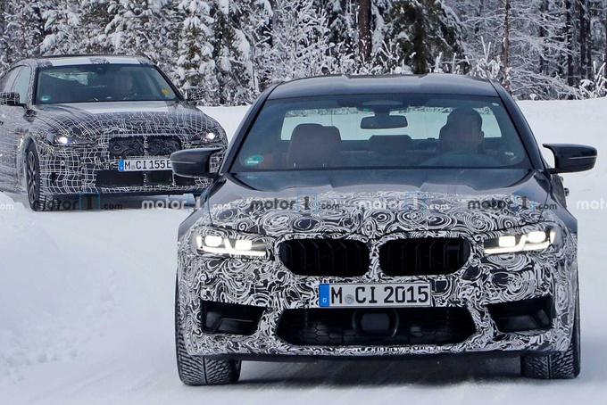 根据宝马的车型更新计划,今年将迎来M5车型的中期改款。根据谍照显示,目前测试车辆前后均有伪装,目前能够确定的是中期改款的M5在前后大灯上均有重新的设计,但是从前脸来看,似乎告诉我们中期改款并不会采用M4 (配置|询价)的超大格栅设计,或许新款格栅的设计将会在下一代M5上使用。