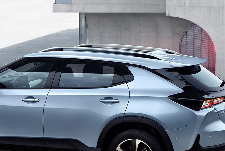 其实从侧面来看,畅巡有点像一台跨界车,比如黑色的包围、黑色的轮眉以及车顶银色的行李架。