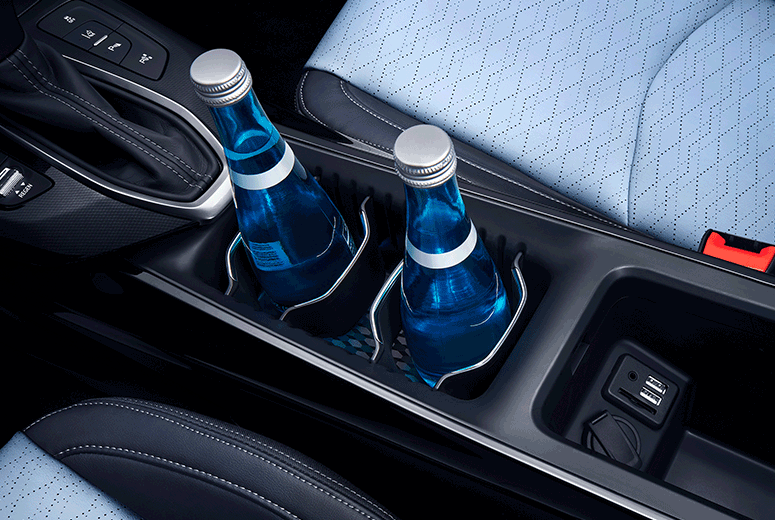 其实畅巡的内饰还有一个地方给我留下了比较深刻的印象,就是它前排的杯架。通过动图我们可以看到,杯架内两侧带有卡槽,用户可以根据放置物体的大小自己进行固定,实用性还是比较强的。
