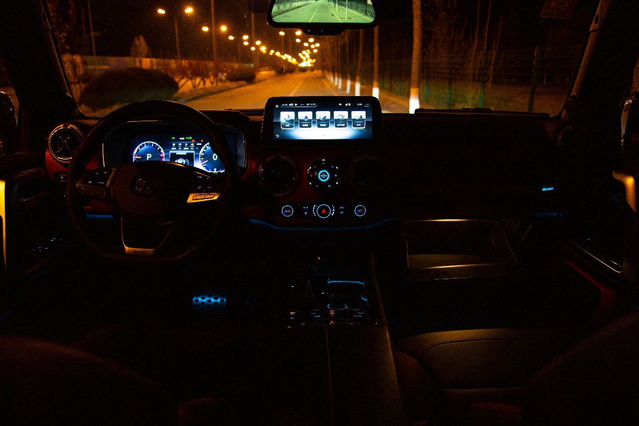 此外,越野过程中顺利与否,车辆的轮胎其实能够起到很大的作用。除了一款适合越野环境的轮胎,还要随车携带气泵,因为在应对一些不同路面情况时需要调整车辆的胎压,这时候如果车辆配有胎压显示功能就会非常方便,像BJ40 PLUS就能通过数字显示,随时查看车辆胎压。