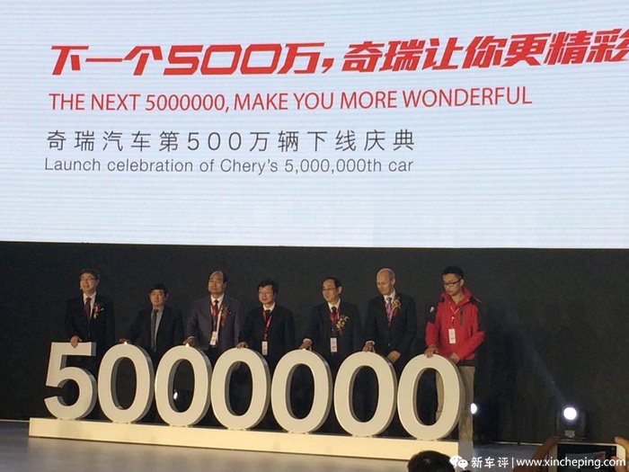 2015年,奇瑞累计迎来500万销量,成为中国品牌第一家;奇瑞新能源发力,纯电车eQ跻进新能源车数月的销量前十榜单;奇瑞集团累计销售55.01万辆,同比增长8.3%,奇瑞品牌销售40.87万辆,观致品牌销量1.4万辆,捷豹路虎品牌销量2.63万辆;出口8.7万辆,连续十三年位居国内汽车企业出口第一位。